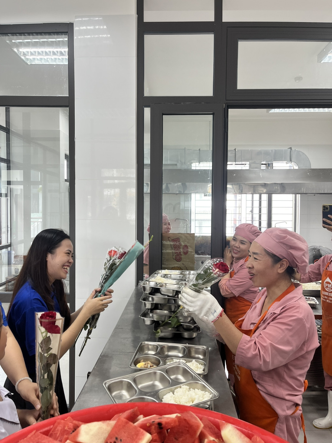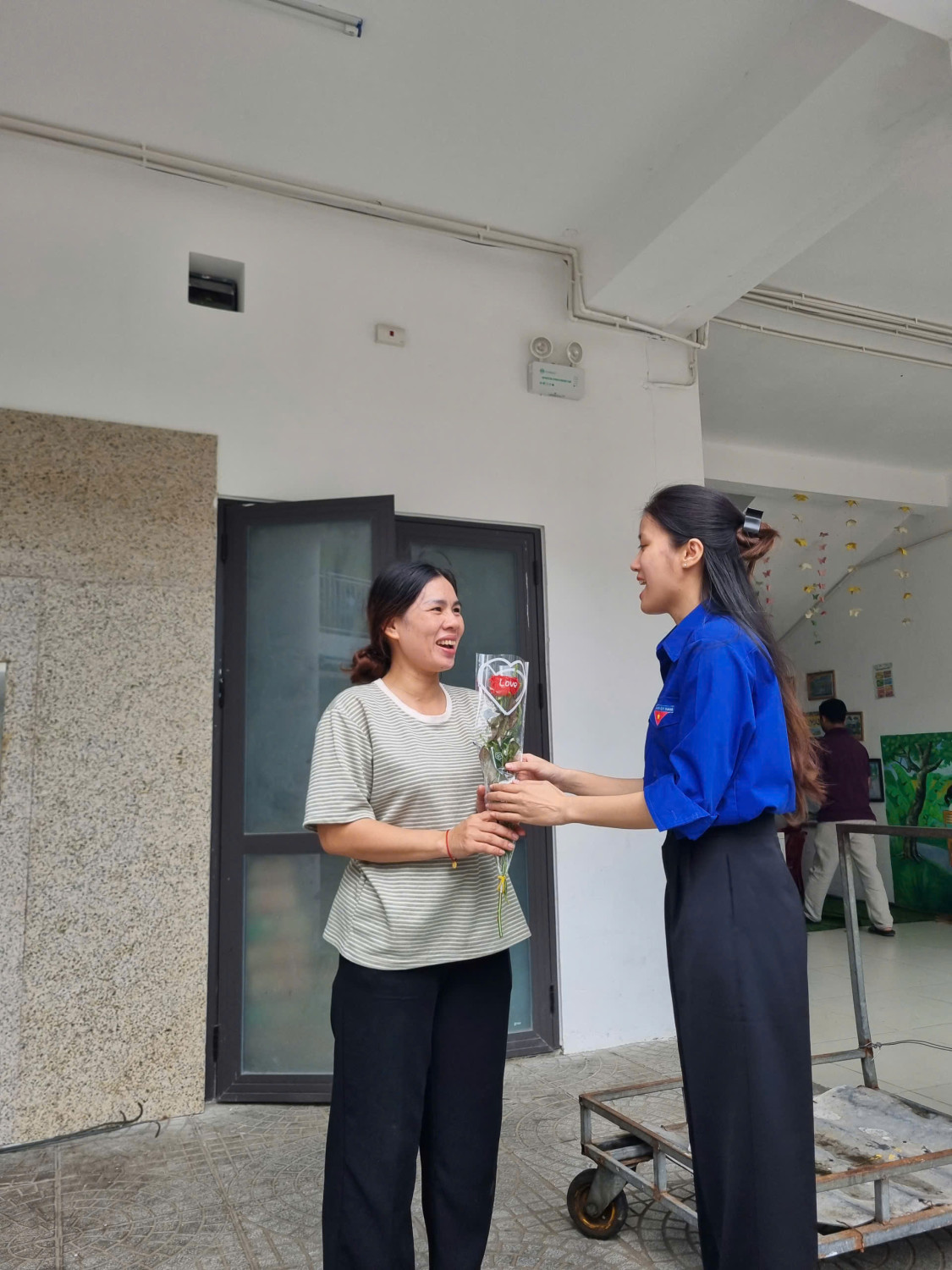 Hòa chung không khí vui tươi, phấn khởi chào mừng ngày Phụ nữ Việt Nam 20/10, Chi đoàn nhà trường đã tổ chức hoạt động tặng hoa và gửi lời chúc mừng đến các nhân viên nữ đang công tác tại nhà trường.