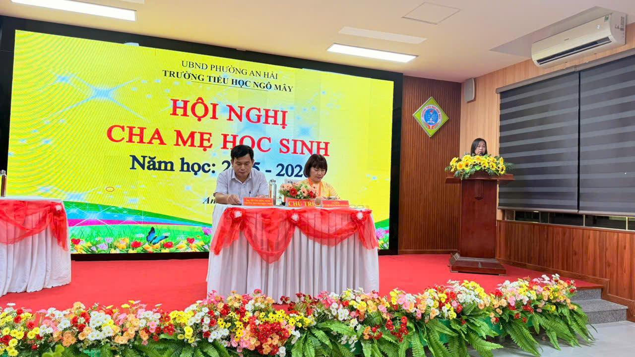 Chiều ngày 19/9/2025, trường tiểu học Ngô Mây long trọng tổ chức Hội nghị Cha mẹ học sinh, năm học 2025 - 2026. Đây là dịp để nhà trường và phụ huynh cùng nhau trao đổi, thống nhất các nội dung quan trọng trong công tác giáo dục, nhằm xây dựng một môi trường học tập thân thiện, an toàn và hiệu quả cho các em học sinh.