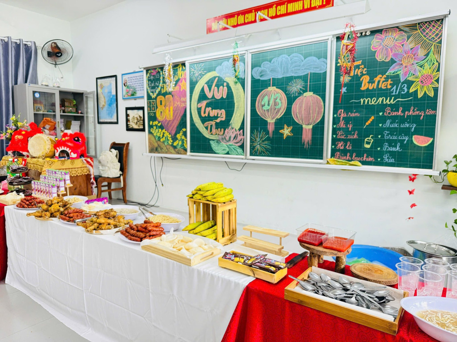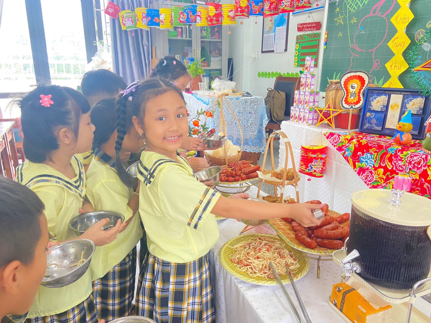 Đặc biệt, nhà trường còn tổ chức tiệc buffet Trung thu với nhiều món ăn hấp dẫn, mang đến cho các em một ngày hội thật đáng nhớ, tràn ngập tiếng cười và niềm vui.