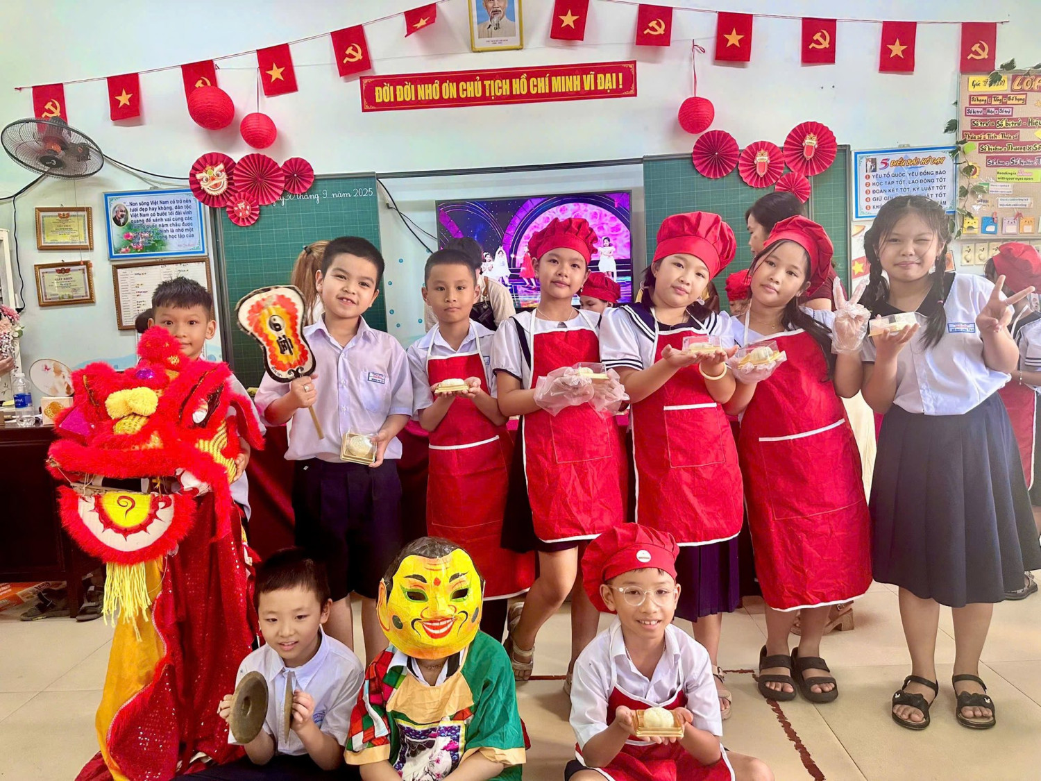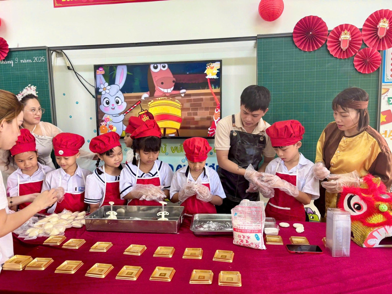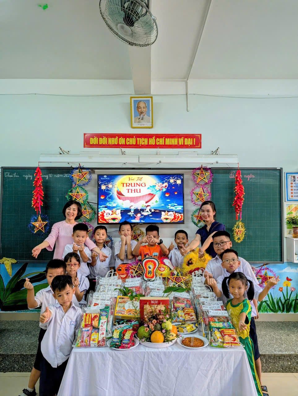 Nhân dịp Tết Trung thu, GVCN phối hợp cùng ban đại diện CMHS lớp đã tổ chức những buổi tiệc nhỏ vui tươi, ấm áp và các hoạt động ý nghĩa khi tự tay làm bánh trung thu và những chiếc đèn lồng, chiếc thiệp xinh để các em học sinh cùng nhau chia sẻ niềm vui, thưởng thức bánh kẹo và quà Trung thu.