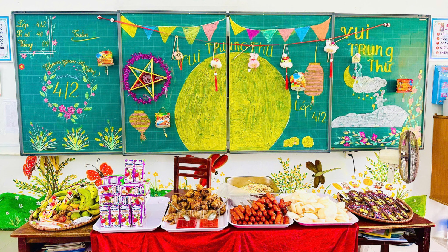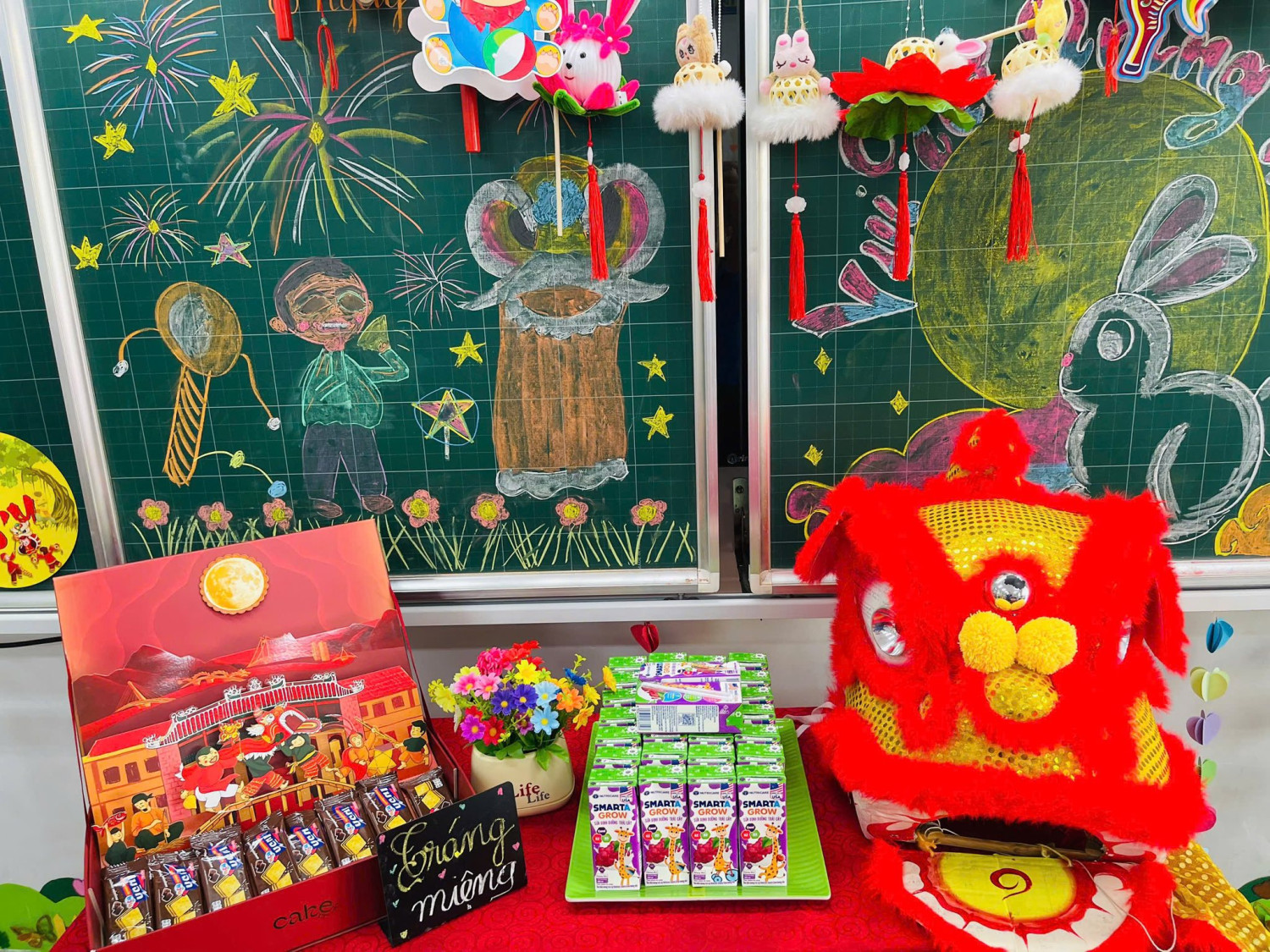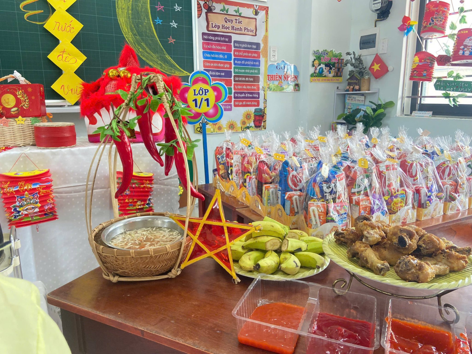 Nhân dịp Tết Trung thu, GVCN phối hợp cùng ban đại diện CMHS lớp đã tổ chức những buổi tiệc nhỏ vui tươi, ấm áp và các hoạt động ý nghĩa khi tự tay làm bánh trung thu và những chiếc đèn lồng, chiếc thiệp xinh để các em học sinh cùng nhau chia sẻ niềm vui, thưởng thức bánh kẹo và quà Trung thu.
