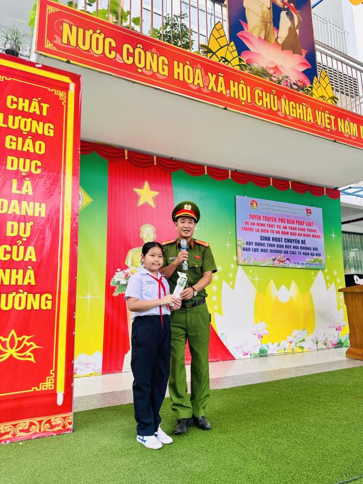 Phối hợp cùng nhà trường trong buổi tuyên truyền, đồng chí Trung tá Nguyễn Công Trúc - Công An phường An Hải, báo cáo viên buổi tuyên truyền về an ninh trật tự, an toàn giao thông đã trang bị cho các em học sinh những kiến thức quan trọng về luật giao thông và kỹ năng tham gia giao thông an toàn thông qua phần hỏi – đáp sôi nổi cùng những phần quà hấp dẫn khi tham gia trả lời đúng các câu hỏi.