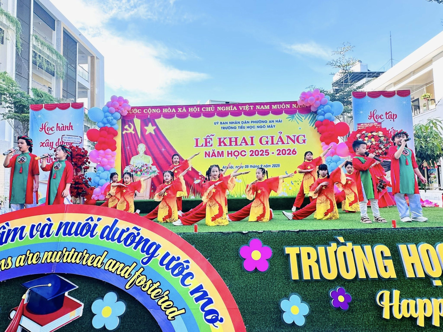 Sáng ngày 05/9/2025, trong không khí hân hoan của cả nước chào đón năm học mới, thầy và trò trường Tiểu học Ngô Mây đã long trọng tổ chức Lễ Khai giảng năm học 2025 – 2026.