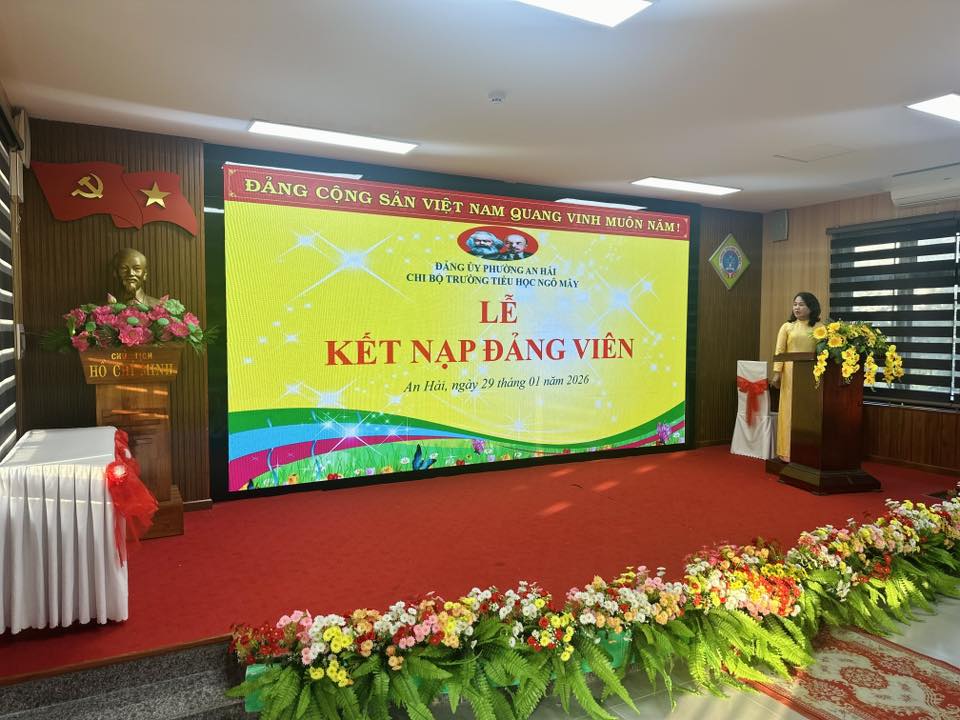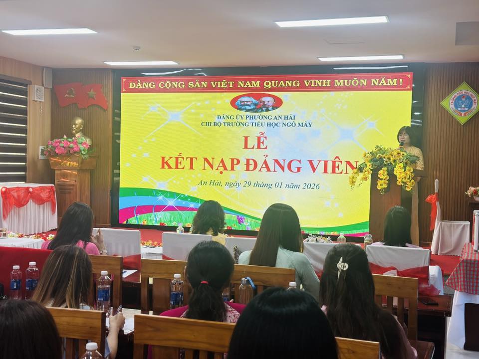 Thực hiện Điều lệ Đảng Cộng sản Việt Nam, được sự quan tâm, chỉ đạo của Đảng ủy phường An Hải, ngày 29/01/2026, Chi bộ Trường Tiểu học Ngô Mây tổ chức Lễ kết nạp đảng viên cho 04 quần chúng ưu tú: Lê Thị Huyền Trang, Ngô Lê Thanh Thuý, Phan Nguyễn Quỳnh Anh, Đàm Thoại Huyền Trân vào hàng ngũ của Đảng.