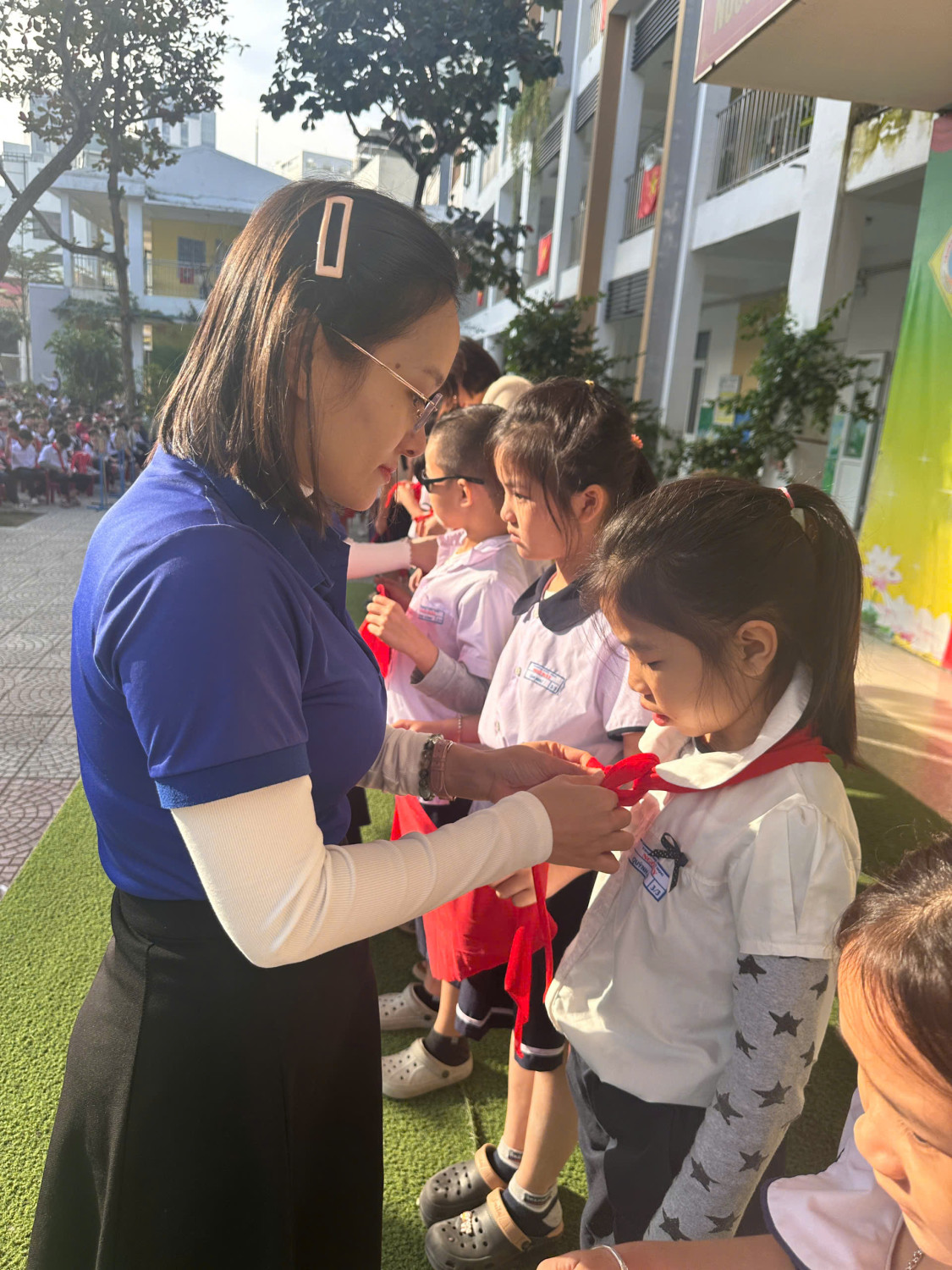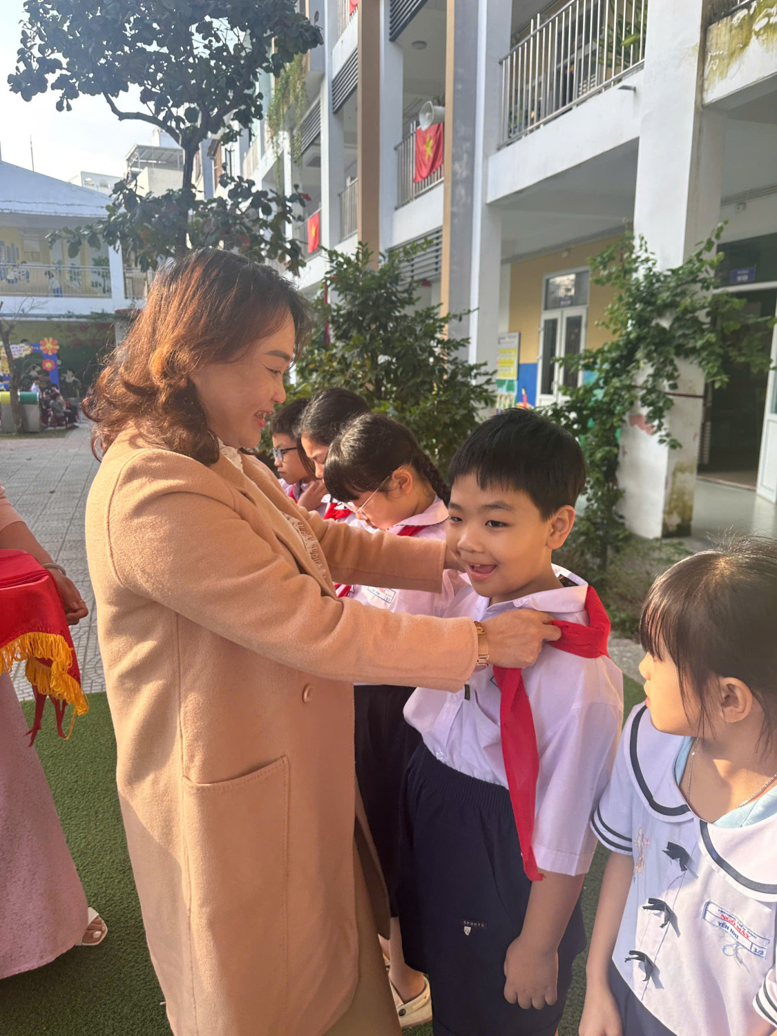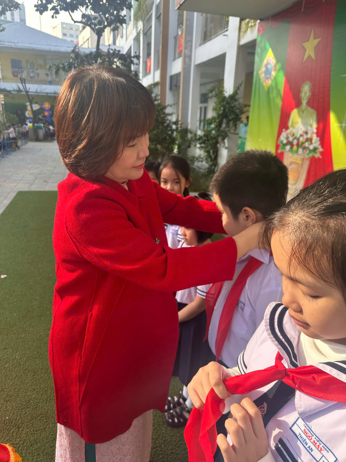 Được đeo trên vai chiếc khăn quàng đỏ thắm, các em không chỉ cảm nhận được niềm tự hào mà còn ý thức rõ hơn về trách nhiệm của người Đội viên: chăm ngoan, học tốt, rèn luyện theo 5 điều Bác Hồ dạy, xứng đáng là con ngoan trò giỏi, cháu ngoan Bác Hồ.